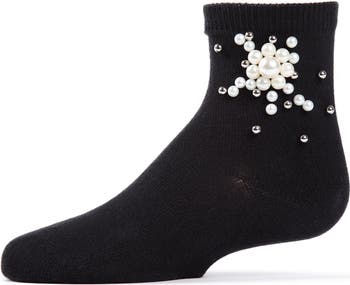 Practically perfect in every way - our Pearl Burst Cotton Blend Crew Socks are delicate, dainty, and the perfect addition to your little one's outfits. Finished with a smooth flat knit, and pretty pearl appliques that she's sure to love. Crafted from a breathable and soft cotton bend, with added spandex for a fit that retains its shape and doesn't pill. Don't let their good looks fool you, these socks are just as durable as they are adorable, so she can run, jump, and play to her heart's content.
