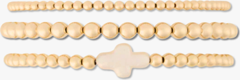 Pearl Cross 14k Gold Filled Bead Three Bracelet Stack