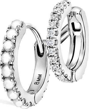 Create the illusion of multiple lobe piercings without the commitment when you wear this elegant hoop earring featuring sparkling diamonds and an attached cuff set with luminous cultured pearls.