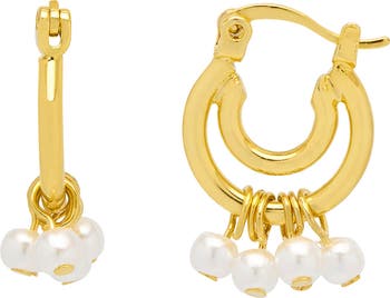 Freshwater pearls glow as they softly swing from these double-hoop earrings finished in a high-polished shine.