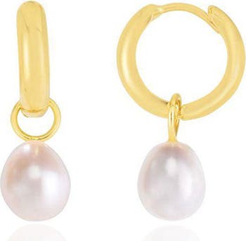 Pearl Drop Huggie Hoop Earrings