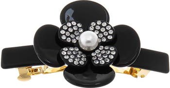 Pearl Flower W/ Rhinestone Black Hair Barrette