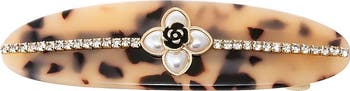 The Pearl Flower with Rhinestone Hair Barrette from Adina Eden is an elegant and sophisticated accessory designed to enhance any hairstyle. Made from high-quality acetate and metal, this barrette features a beautiful flower design adorned with faux pearls and clear rhinestones, adding a touch of sparkle and refinement. Measuring 2.5CM x 9CM, it offers a secure hold while adding a chic, feminine touch to your look. Perfect for both everyday wear and special occasions, this barrette is a must-have for those seeking a luxurious and timeless hair accessory.