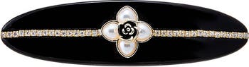 The Pearl Flower with Rhinestone Hair Barrette from Adina Eden is an elegant and sophisticated accessory designed to enhance any hairstyle. Made from high-quality acetate and metal, this barrette features a beautiful flower design adorned with faux pearls and clear rhinestones, adding a touch of sparkle and refinement. Measuring 2.5CM x 9CM, it offers a secure hold while adding a chic, feminine touch to your look. Perfect for both everyday wear and special occasions, this barrette is a must-have for those seeking a luxurious and timeless hair accessory.