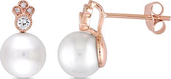 Pearl, White Sapphire & Diamond Stud Earrings 10k