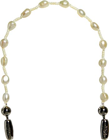 Seed bead accents separate the freshwater pearls that are strung along this wrist strap that's designed exclusively for ossa's iPhone case.