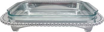 An elegant addition to any table, this set features a Pyrex® glass casserole tray and a coordinating caddy embellished with handcrafted aluminum pearls.