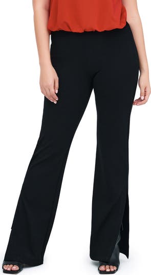 A sleek start gives way to a kicky slit in easy-to-love pants cut from stretchy ponte knit.
