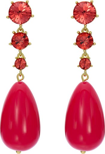 A trio of prong-set crystals and slender pear-shaped drops bring striking color and shine to earrings that add instant glamour to your stack.