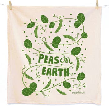 Spread Peas on Earth with a gift that gives back. 10% of sales from any item in our Peas On Earth Collection, including this dish towel and sponge cloth gift set, goes to No Kid Hungry, where $50= 500 meals. Our dish towel + sponge cloth sets are packaged ready for gifting! Packaged set includes one towel and one sponge cloth and the label on the back shows what the full towel + sponge designs look like. TOWEL • Each towel measures approx. 24"x26" (size tolerance 2-3") • All natural, unbleached 100% cotton • Machine washable • Hand screen-printed with eco-friendly inks SPONGE CLOTH These Swedish sponge cloths are an eco-friendly replacement for kitchen sponges and paper towels. They last for months and are biodegradable or compostable, making cleaning up cute with less waste. • Sponge measures 6.8” x 7.75” • Made of 100% biodegradable material • Hole on top to make it easier to hang by the sink • Screen printed with waterbased, eco-friendly ink • Can be cleaned in dishwasher or washing machine • Soft and pliable when wet, and dries quickly in between uses