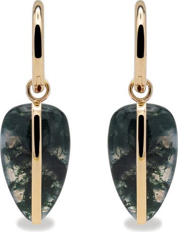 Moss agate is accented with 14-karat gold in these drop hoop earrings that bring earthy glamour to your lobes.