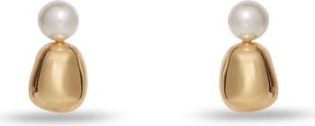 - Faux freshwater pearl stacked on a 14K gold-plated stone