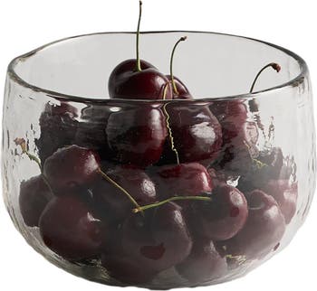 Clear, thick glass bowls are far from ordinary with their straight-sided shape and polished, dimpled exterior.