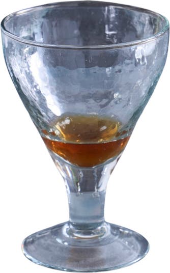 - Made from partially recycled glass, their gently hammered texture and faint greenish color set them apart from typical stemware.