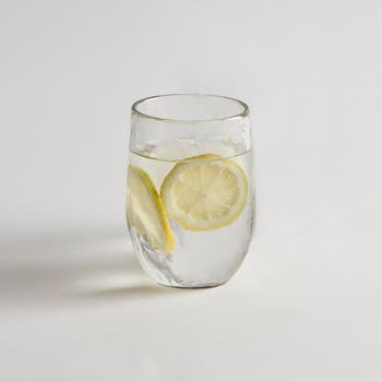 These thick, dimpled glasses combine durability with a distinctive handcrafted aesthetic, making them essential for everyday use. With a generous 12 oz. capacity, they effortlessly accommodate everything from dinnertime water to morning smoothies, elevating daily rituals with subtle texture and weight. Their thoughtfully rounded shape feels comfortable in hand while the pebbled surface catches light to create an inviting visual appeal. Perfect for those who appreciate functional design that speaks to both utility and style. |Material: Recycled Glass |Capacity: 12 oz. |Dimensions: 3 1/4" dia x 4 3/4" h |Weight: 2.90 lbs