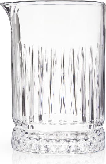 Designed and sized for expert bartending, this 17 oz. professional-grade mixing glass accommodates about three drinks and works smoothly in allegiance with our bar spoons and strainers. Features a thickset base, precision pour spout and chiseled geometric sides.