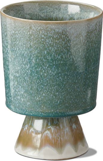 the pedestal small planter brings a vibrant and natural vibe to your interior decor. showcasing a stoneware construction and reactive glaze finish, this decorative planter gives your household foliage a beautiful upgrade. this planter is for decorative use only and is not water tight. holds up to a 5" drop in pot.