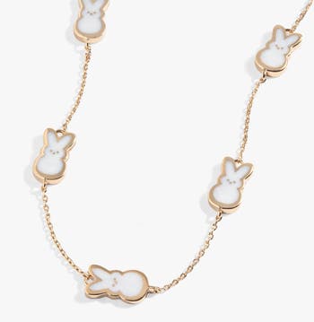 Celebrate everything sweet about springtime and Easter with this PEEPS® Pearlized Bunny Charm Necklace, which features pearlized PEEPS® bunny charms inline on an adjustable-length chain necklace. Wear it to welcome the season — or gift it to somebunny you love.