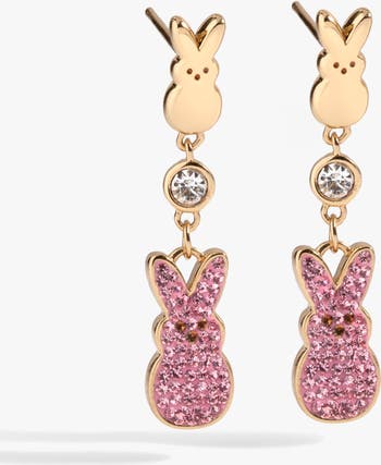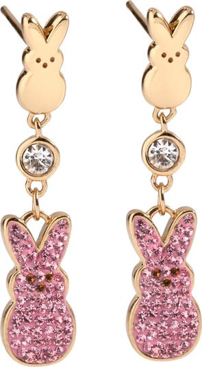 Celebrate everything sweet about springtime and Easter with these PEEPS® Statement Earrings, which are post earrings that each feature a gold-tone PEEPS® bunny charm with an accent crystal underneath, and a larger pink pavé crystal PEEPS® bunny charm below. Wear them to welcome the season — or gift them to somebunny you love.