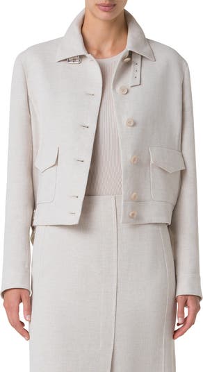 The best of bomber, trench and denim jackets are combined to fashionable and functional effect on this cropped jacket tailored from cotton-kissed twisted-linen double face.