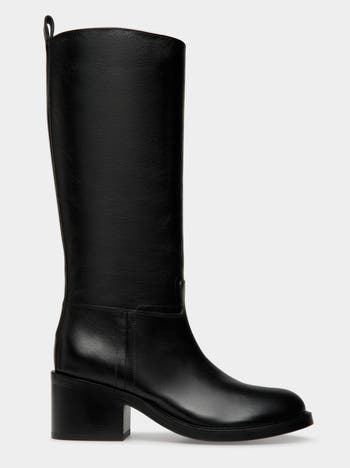 Crafted in finest black calfskin, the Peggy boot exudes sophistication and style with a stacked heel and a silhouette that's almost utilitarian. Cemented construction confirms its durability, for cool, wear-anywhere footwear.
