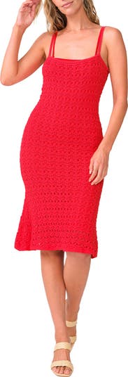 Saunter from beachy dinners to sunset cocktails in this shapely cover-up dress knit with airy crochet stitching to show off your suit underneath.