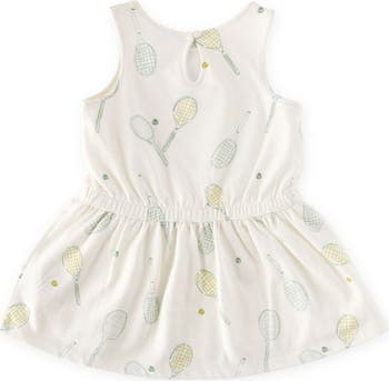 They'll ace their sporty look in this adorably printed sundress cut from pure, organic cotton and cinched with a drawstring waist.