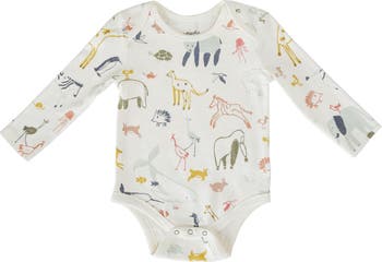 Fun prints entertain baby in a comfy organic-cotton bodysuit made with an envelope neck to make changes easier.