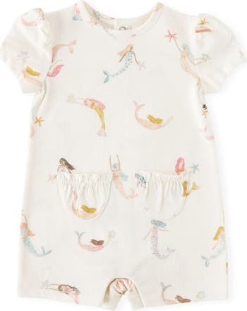 A classic romper goes from baby basic to an adorable essential with sweet puffed sleeves and a fantastical mermaid print patterning the soft, breathable organic cotton.