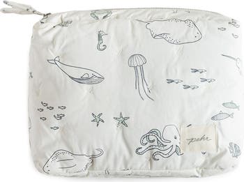 Store diapers, wipes, pacifiers and more in this charming pouch that holds all the basics for baby in one compact space.