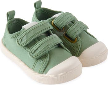 Durable cotton canvas brings all-activity comfort to a sneaker made with easy-on/stay-on straps and a sturdy covered toe to protect little feet against bumps and stubs. The wide, slip-resistant sole helps ground every beginning step in grippy confidence.