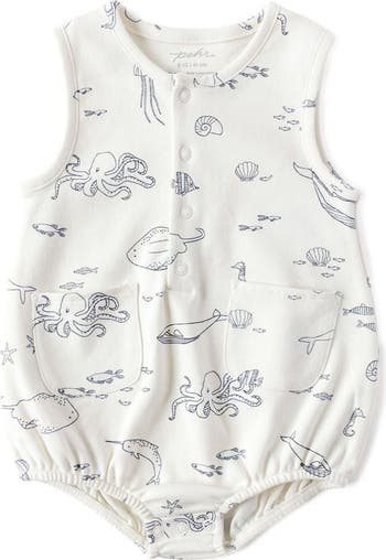An aquatic-inspired print brings play-ready fun to this organic-cotton bodysuit with snaps between the legs for easy diaper checks and changes.