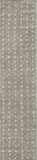 Inspired by mid-century rugs, our geometric dot rug has a soft, low shag pile. The all-over pattern is woven in ivory on a gray background. Add some graphic punch to your living room, bedroom, or reading nook with this easy-care rug.