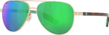 Colorfully mirrored and polarized lenses reduce glare and shield your eyes from the sun's rays in luxe pilot sunglasses inspired by the textures of boat hulls.