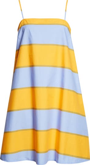Bold stripes and happy hues define a sunny-day dress cut from cool cotton.