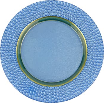 Vibrant color and a richly textured rim bring eye-catching glamour to a glass salad plate that will instantly elevate your table setting