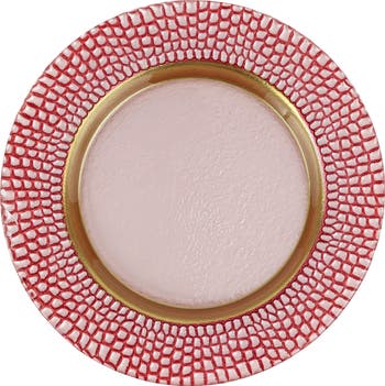 Vibrant color and a richly textured rim bring eye-catching glamour to a glass salad plate that will instantly elevate your table setting