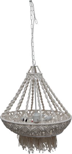 - The intricate macramé design of this pendant creates a beautiful look for your home