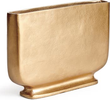 - Designed with a shallow profile, this simple vase is perfect for narrow shelving and alcoves. Large in scale, it is ideal for tall stems of any color, and is also just stunning as is.