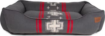 This cozy polar-fleece dog bed is patterned with bold, colorful stripes and designed to support your pooch through every nap. It's filled to the max with recycled memory fibers for comfort, while the cover comes off for easy washing.