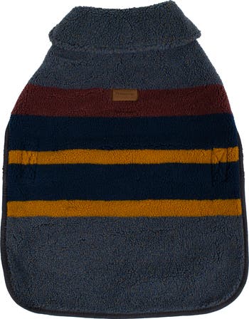 Ruffing it takes on a whole new meaning for your doggo in this cozy fleece jacket with colors inspired by old-school tent camping. The textured fleece reverses to quilted faux suede.