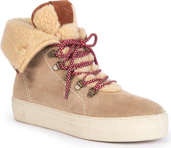 A foldover cuff highlights the plush wool lining of a lace-up bootie that keeps you stylish and cozy when the temperature drops.