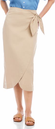 Cut from crisp stretch cotton, this wrapped midi skirt is topped with drapey waist-defining side tie.