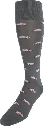 Take your sock style to new heights with Penelope's Flying Pigs Over-The-Calf Mercerized Cotton Novelty Socks! These whimsical socks feature a delightful flying pig design, perfect for those who love fun, quirky fashion with a touch of humor. The playful pattern showcases charming pink pigs soaring through the clouds, bringing a smile to anyone who sees them. Crafted from premium mercerized cotton, these socks offer a smooth, luxurious feel while providing excellent breathability and durability. The over-the-calf length ensures a secure and comfortable fit that stays in place all day, making them ideal for both casual wear and unique office looks. Whether you are looking to make a bold fashion statement or searching for the perfect gift for someone who loves quirky socks, Penelope's Flying Pigs socks are sure to add a playful pop of personality to any outfit. Fits shoe sizes 8-12.