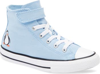 Friendly penguins grace the iconic All-Star logo on this kid-size version of the beloved high-top sneaker featuring an adjustable hook-and-loop strap to help them slip on and off with ease.
