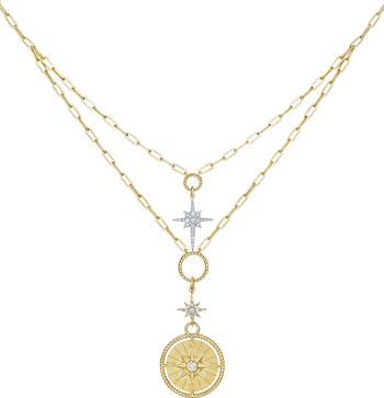Charms designed to reflect good fortune and happiness create a scintillating line of shine down the center of this 18-karat gold necklace glowing with pavé diamonds.