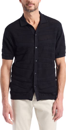 A textured knit in a tonal design details this button-up sweater crafted from a fine-gauge knit of pure cotton.