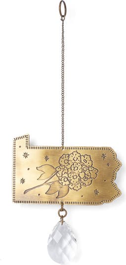 Pennsylvania States state flower, the Mountain Laurel, is beautifully captured on this engraved brass state-shaped suncatcher. The detailed design evokes the blooms found in the Appalachian mountains, paired with a crystal prism that spreads sunlight throughout your space. Its a reminder of the states natural beauty and outdoor heritage. This suncatcher is a meaningful keepsake for Pennsylvania residents and lovers of wildflowers.