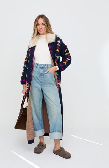 • The Cathy cardigan is a statement knit designed for effortless layering. In a long-line silhouette with intricate jacquard patterning, it brings warmth, texture, and a touch of boho charm to cooler days.