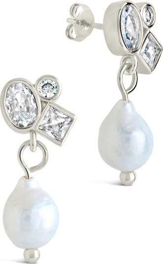 Penny Cubic Zirconia Cluster & Freshwater Pearl Drop Earrings
